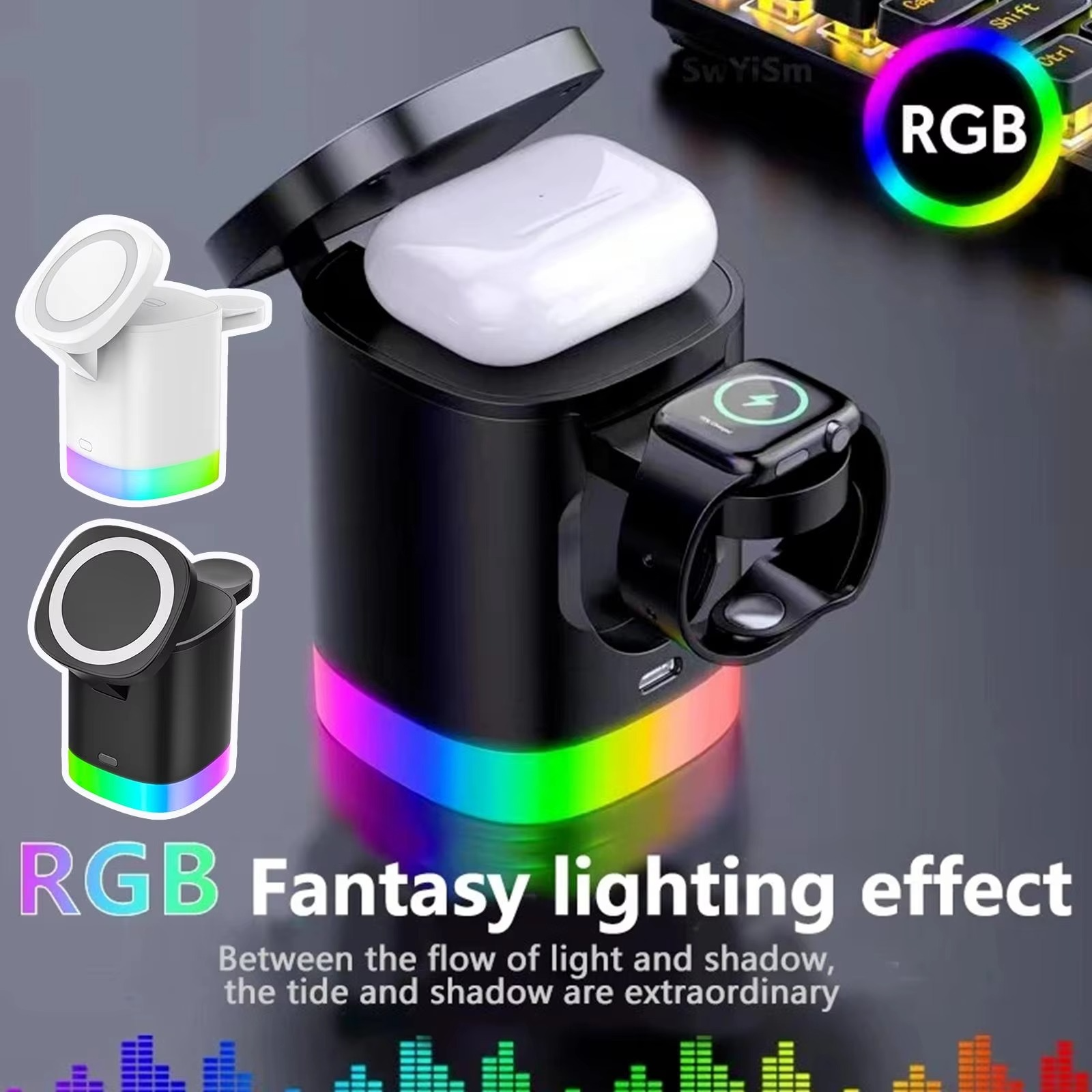 - RGB Ambient Light: Customize your charging station with vibrant RGB lights that create a soothing atmosphere 🌈